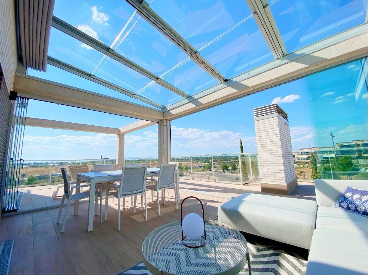 Le lame in alluminio che compongono il tetto della struttura sono motorizzate e possono ruotare dalla posizione orizzontale di chiusura fino a quella di apertura, che va dagli 0° ai 135°.